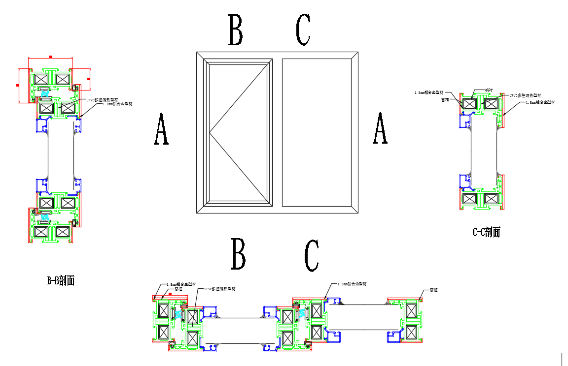 75系列铝塑共挤型材门窗,型材75系列,upvc型材壁厚4.0,铝型材壁厚1.4.